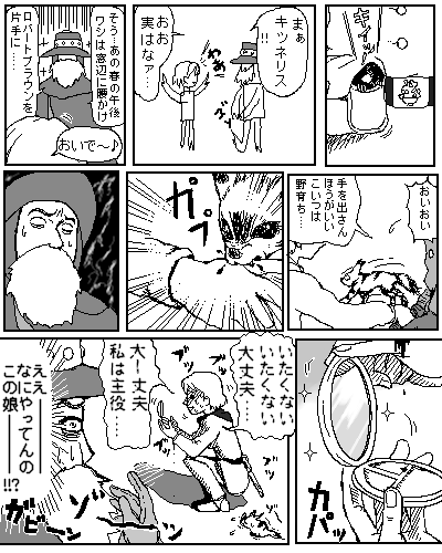 色々混ぜ混ぜして作ってみました。最近の私のパロの描き方として最初にオチのコマを描くってのがあります。そうすれば「もうダメだ・・・消そう・・・(ゴシゴシ)」ってならず、「せっかくオチ描いたのに消すのもったいない」ってなるからです(笑)ダメダメですね。
